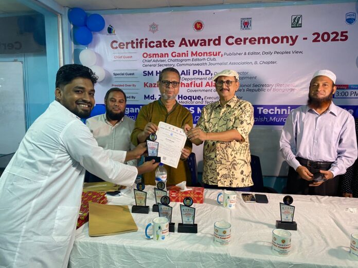 এইচডিএস মেডিকেল এন্ড টেকনিক্যাল ইনস্টিটিউট-এর উদ্যোগে আজ শুক্রবার বিকাল ৩টায় অনুষ্ঠিত হলো “সার্টিফিকেট প্রদান অনুষ্ঠান ২০২৫”। শিক্ষার্থীদের দক্ষতা উন্নয়ন, তাদের প্রচেষ্টার স্বীকৃতি এবং সমাজে শিক্ষার গুরুত্ব তুলে ধরার লক্ষ্যেই এ অনুষ্ঠানের আয়োজন করা হয়।